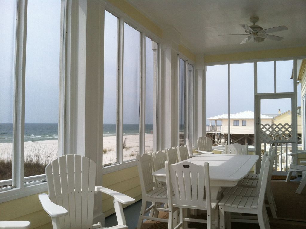 Appropiately named 'PICTURE PERFECT' this is a Ready to Rent, Beautifully decorated, 3000 plus square foot home directly on the Sugar White Sand Beach of the Gulf of Mexico in the Fort Morgan area of Gulf Shores, Alabama. Very low density beach, just 14.4 miles from Highway 59 in Gulf Shores. Located in Morgantown. Homeowners association provides access to a swimming pool and tennis courts, just a short walk from the beach front house.Great Room complete with 46' HD TV, DVD, VCR, stereo, wet bar, and fireplace. This den area opens onto a large screened-in porch that leads to decks and a private board walk over the dunes to the beach. Complete kitchen on the main level with every thing you will need to enjoy your stay, including a separate beverage refrigerator and a commercial ice maker(will make over 30 lbs of ice per day). Satelite 'DISH' TV, 120 channels. DSL LINE for your computer connections.Master bedroom suite downstairs with 42' HD TV,VCR, king bed, and very nice full bath area and plenty of closet space. Three other bedrooms on the main level. Two with two queen beds and one with two twin beds. The west queen room has a private full bath. The other two main level bedrooms share a full bath. Oversized master suite upstairs has king bed, sitting area with 42' HD TV, DVD, and fireplace. This room opens to a large covered porch and provides a wonderful view of the Gulf as well as beautiful sunrises and sunsets. A large bath with his and her counters and lavatories, separate garden tub and shower, is also located upstairs for the enjoyment of the master bedroom suite.Complete kitchen on the main level with everything you will need to enjoy your stay including a separate beverage refrigerator ane stand alone commercial ice maker.A very peaceful place to spend your vacation. Shopping, golf, nature areas, and historic areas all with in a 15 to 30 minute drive.Keywords: Beachfront Home More details