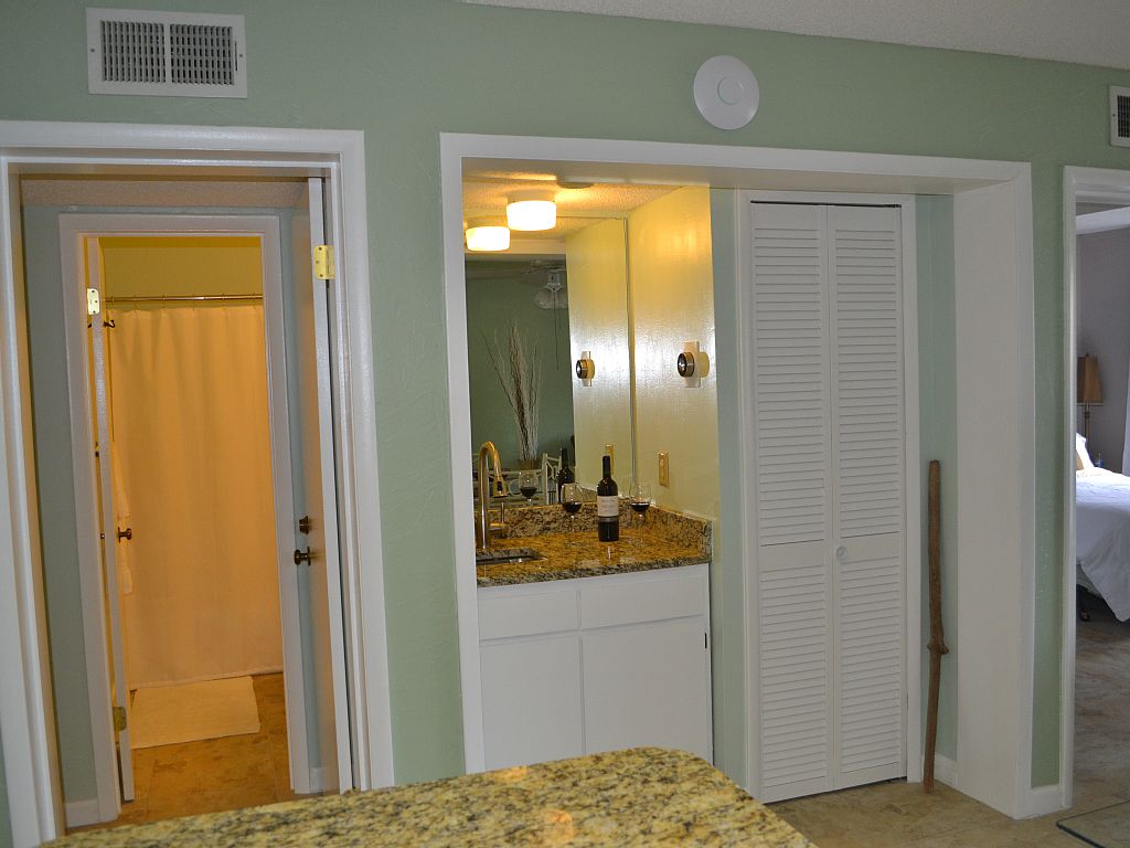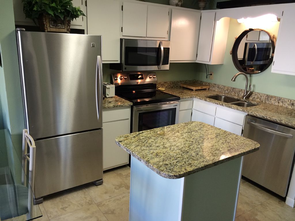 Remodeled in the Spring of 2015, this unit features granite counter-tops and vanities throughout, new ceramic flooring, new furniture and a new full size kitchen. In the kitchen we have included an island and new stainless steel appliances. This condo is elegantly decorated with comfort in mind. The two separate bedrooms have very comfortable queen beds with blackout curtains if you want to sleep-in or take a well deserved nap. Each bedroom has its own bathroom so you can have all the privacy you need. The living room has an over-sized couch with a queen sleeper and a lazy boy recliner. A full sized dining table creates the perfect gathering place for family dinners or playing board games. All of your linens and towels are new and our housekeeping service washes every piece of linen, including the comforters on the bed, so you are assured of a clean and pleasant stay. It's hard to stay closer to the beach with the water and stunning beach pool (1 of 6) only steps away. In case it rains or in cooler seasons, our unit in Plantation East allows you access to our fabulous indoor pool and sauna. Guests staying at other Gulf Shores Plantation phases (Plantation dunes, Plantation Palms, Plantation West and the Beach Cottages) on the property are no longer allowed access to our indoor pool, ensuring our Plantation East guests enjoy an un-crowded swimming experience. In the living room is a new 50 inch flat screen television and in the master bedroom is a new 42 inch flat screen TV. We've included everything imaginable to make your stay more fun. A Blue Ray player in the living room is available so you can enjoy your favorite music or videos as you relax and let the stress melt away. You can also use the blue tooth sound bar to play music from your Bluetooth enabled devices, just remember to be mindful of your neighbors. We have high speed internet in the unit so you can stream or play games on-line. If you want crowded beaches, heavy traffic and non-stop noise you're looking at the wrong location. We are a family resort with a secure 24/7 gated entrance and quiet time beginning at 10:00 PM. Just a short 15 minute drive out the peninsula transports you worlds away to a true resort experience. Sandwiched between thousands of acres of National Wildlife refuge with hiking trails and empty or low density beaches, you'll feel like you're in old Key West. We have shuffleboard, tennis, horseshoes, and one of the 70 best resort golf courses in The Unites States right next door. Kiva Dunes is a world class golf club open to the public with a driving range and practice facility, and the rates are surprisingly low! Enjoy a cocktail or coffee on the beach at Connections or walk next door to Kiva for lunch in the club house or tiki bar overlooking the 18th green. We have outdoor grills located throughout the property near each entrance and we offer a laundry on each floor in case you want to wash some clothes before returning home. Our island was discovered by the Spanish in 1500 and much of their fleet was destroyed in a hurricane in 1504 just behind our property. Because we are on a narrow peninsula separating the Gulf of Mexico from Bon Secour Bay, you can enjoy both the beach or bay when you stay with us. We have a boat launch across from our property and you are welcome to park your boat and trailer here at our resort. Just a few miles west you'll find historic Fort Morgan and museum, our ferry to Dauphin Island, a state park and marina. You can buy an ice cream cone, fill up with gas, get a massage or have dinner at sports bar within 1 mile of the resort. More details