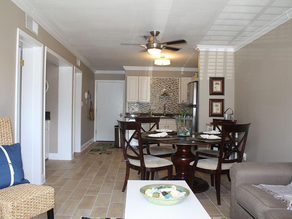Remodeled in the summer of 2014, this unit features a stunning new ceramic floor throughout, new furniture and a new full size cook's kitchen with new stainless steel appliances. Banana Wind is professionally decorated with Edison style designer lighting, two separate bedrooms with private baths. A full sized round dining table creates the perfect gathering place for family dinners or playing board games. Our housekeeping service washes every piece of linen, including the comforters on the bed, so you are assured of a clean and pleasant stay. It's hard to stay closer to the beach with the water and stunning beach pool (1 of 6) only steps away. In case it rains or in cooler seasons, our unit in Plantation East allows you access to our fabulous indoor pool and sauna. Guests staying at other Gulf Shores Plantation phases (Plantation dunes, Plantation Palms, Plantation West and the Beach Cottages) on the property are no longer allowed access to our indoor pool, ensuring our Plantation East guests enjoy an uncrowded swimming experience. We've included new flat screen televisions in each room. Our balcony features two rocking chairs and tables so you can relax and enjoy the beautiful evenings on the water. We've included everything imaginable to make your stay more fun. If you want crowded beaches, heavy traffic and non-stop noise you're looking at the wrong location. We are a family resort with a secure 24/7 gated entrance and quiet time beginning at 10:00 PM. Just a short 15 minute drive out the peninsula transports you worlds away to a true resort experience. Sandwiched between thousands of acres of National Wildlife refuge with hiking trails and empty or low density beaches, you'll feel like you're in old Key West. We have shuffleboard, tennis, horseshoes, and one of the 70 best resort golf courses in The Unites States right next door. Kiva Dunes is a world class golf club open to the public with a driving range and practice facility. And the rates are surprisingly low! Enjoy a cocktail or coffee on the beach at Connections or walk next door to Kiva for lunch in the club house or tiki bar overlooking the 18th green. We have outdoor grills located throughout the property near each entrance and we offer a laundry on each floor in case you want to wash some clothes before returning home. Our island was discovered by the Spanish in 1500 and much of their fleet was destroyed in a hurricane in 1504 just behind our property. Because we are on a narrow peninsula separating the Gulf of Mexico from Bon Secour Bay, you can enjoy both the beach or bay when you stay with us. We have a boat launch across from our property and you are welcome to park your boat and trailer here at our resort. Just a few miles west you'll find historic Fort Morgan and museum, our ferry to Dauphin Island, a state park and marina. You can buy an ice cream cone, fill up with gas, get a massage or have dinner at sports bar within 1 mile of the resort. More details