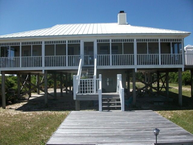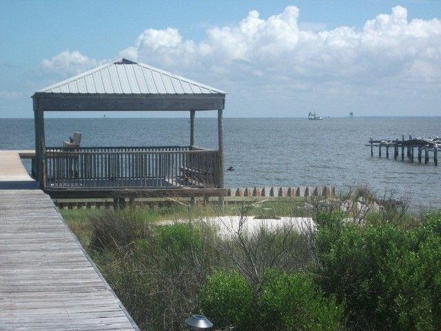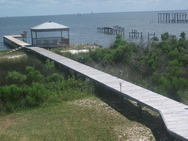 Very private 3 bedroom, 2 bath home situated on a 1.5 acre lot on historic Mobile Bay. The gourmet kitchen includes a gas stove and built-in ice maker. The living areas open on to a sun deck with outdoor shower and a covered 50ft. screened-in gallery which is great for relaxing after a day on the beach. There is also a covered gazebo and 150 ft. pier on the Bay for fishing and crabbing or just watching the spectacular sunsets!