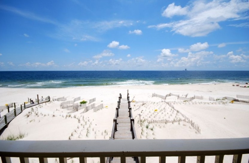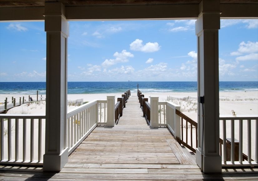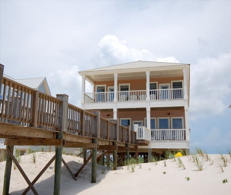 This large (3,400 square foot) beautiful beach house sits directly on the Gulf of Mexico. It is perfect for large families and reunions. It has a large kitchen complete with custom cabinets and black granite counter tops and provides all the necessities for entertaining including an extra full size refrigerator. The breakfast bar wraps around the kitchen and seats 10 people on bar stools. There are six generous bedrooms, each with their own bath. The master bedroom is downstairs and has a king bed and a very nice attached bath with a garden tub, separate shower, and walk-in closet. Three other master suites also have king beds and attached baths. One of these master suites is also downstairs. The other two are upstairs, open to a covered deck, and have amazing views of the Gulf of Mexico. Another large upstairs bedroom is a sleeping area and is set up for those guests with several small children. It sleeps six. The last bedroom has two twin beds and a day bed with a trundle bed in it and sleeps four people comfortably. Each room has its own TV and some have a DVD or VCR. Downstair floors are tile and laminate tile, and upstairs are hardwood. The well appointed den and dining area has a large TV with a DVD/VCR. It looks out to a large covered deck and to the white sand and blue water of the Gulf of Mexico. The beach can be accessed by your own private dune walk-over with an outside shower.High speed internet service and television service is provided by Mediacom.This house is perfect for groups of 4 to 8 golfers!! The home is located near the celebrated Kiva Dunes and Peninsula golf courses and Ft. Morgan Marina. It is a short drive to world class shopping and dining in Gulf Shores. This house will make your beach vacation dreams come true. Rentals are Sunday to Sunday during the summer season and are subject to a cleaning fee and occupancy tax. No student groups.WEDDING PACKAGES AVAILABLE!!! ASK FOR DETAILS.THIS HOUSE RENTS SUNDAY TO SUNDAY.Keywords: House More details