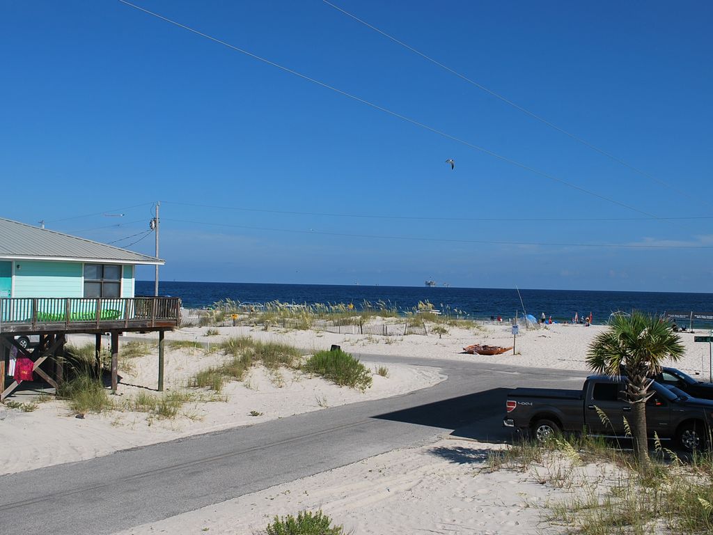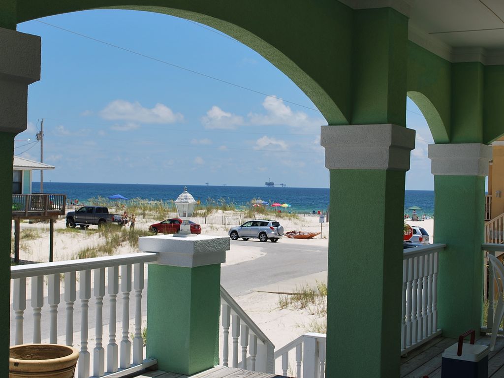 VRBOKey LimeOh the views and only a few feet from the white sandy beach. Sit on the front or back porch protected from the sun and enjoy the balmy breezes and sea the gulf to the south and the bay to the north. The sunrises are spectacular on the back porch and the sunsets are amazing from the front porch. Key Lime is located in the prestigious Heritage Shore subdivision providing wonderful amenities perfect for the old to young including two swimming pools, a tennis court, and clubhouse. All superbly maintained. You are literally 50 ft. to the beach where you can spend the whole day of fun and sun on the white sandy beach and crystal clear water. The house is one mile from the Fort Morgan Marina where you can Charter a fishing trip, rent jet ski's or dock your own boat.The house is a spacious 3 bedroom 2.5 bathroom home. Open concept living, dining and kitchen area. Lots of windows everywhere giving the home a bright and airy atmosphere. The kitchen is well stocked for simple to gourmet cooking. The washer and dryer are full size. There are two king size beds, one full and one twin. Two of the couches pull out to queen size beds. Two bedroom have an suite bathrooms. All rooms have TV and cable. DVD player in the main room. Plenty of space inside and out to enjoy your relaxing vacation. The house has been recently purchased by new owners and has undergone a deep cleaning with a few updates.A few of the updates include new TV and a large picnic table on the back porch so the whole family can enjoy eating outside. There is a large selection of books, games, puzzles, and some DVD's for your use. The home has free WiFi.A great feature of the house include a pull through driveway. So there is plenty of parking. If towing a boat or trailer the pull through makes it easy to store and navigate. More details