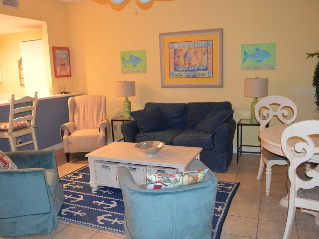 Welcome to the Flip Flop-Inn, this is unit 5003 located on the First Floor of the Gulf Shores Beach and Racquet Building in the Gulf Shores Plantation Resort. We made some great changes this year! New Oven, New bed linens, new Furniture, new cleaning service. We made some great changes this year. We want you to love your vacation and trust that we will take care of you year after year! If you return we will discount your weekly rental 10% . The Flip Flop-Inn is a huge unit. It Sleeps 10 in Beds!! The Furniture and Decor in the Flip Flop-Inn is comfortable and fun. Each of the Three Bedrooms have flat screen tvs. We Just replaced the washer dryer the living room love seat and the back door! The Flip Flop-Inn is conveniently located directly in-front of pools and tennis courts. Steps from the beach. Plenty of room for the whole family. This property is kid and family friendly. The Plantation is the perfect escape from the busy crowds of Gulf Shores. Relax and unwind in this beautifully decorated beach getaway. We also own VRBO 183534, in the same resort, invite the whole family and enjoy!Keywords: Welcome to the Flip Flop-Inn. This is a first floor Unit In the Gulf Shores Plantation,. Located steps away from pools and beach. Bright and Fun! This property is kid and family friendly. More details