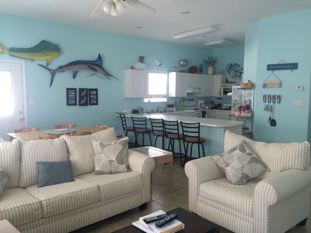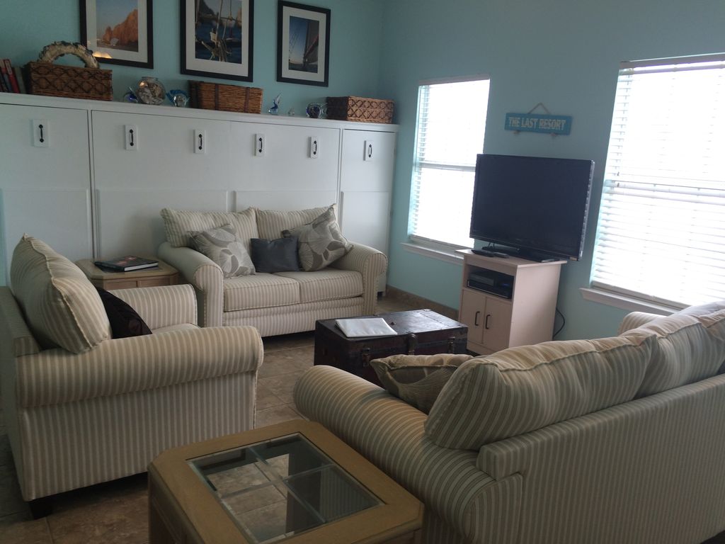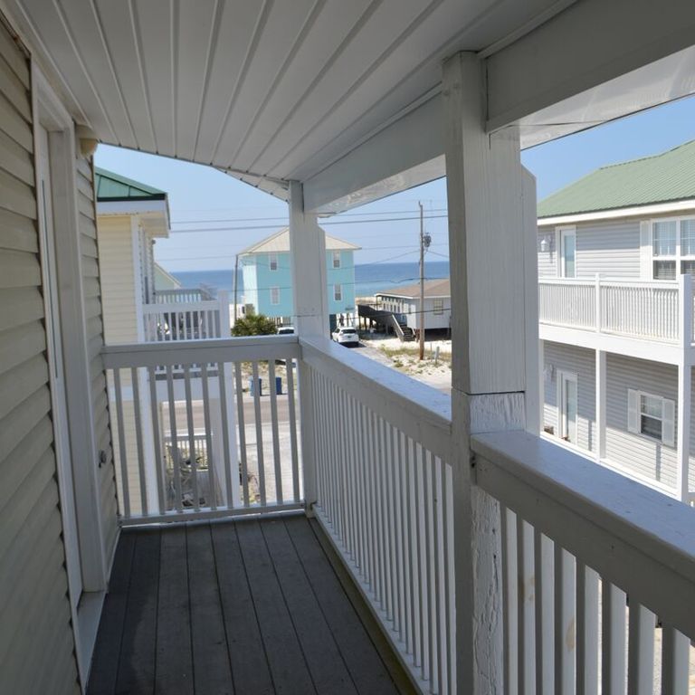 **Rental Rates INCLUDE Lodging Tax****Must Be 25 Years Old To Rent****Sleeps 7, with murphy bed in Living Room****Outdoor pool****Free Wifi**Two Story home directly across the TWO lane road from the sugary white sandy beaches of Gulf Shores. This a quaint community of 8 homes with a shared outdoor pool. Public Beach Access is about 100 yards down on the left. There is a board walk with benches, showers and restrooms.2 Bedrooms, 3 Full Baths; Master has King bed with balcony access and jetted tub and walk-in shower. Second bedroom has queen and twin beds with full bath. Both bedrooms have wall mounted flat screen cable tv. Main level has bathroom with walk-in shower and Queen size Murphy Bed in built-in cabinet. Large 44' Flat Screen with DVD player. Two sofas and chair in living room, adjoining dining area seats 6 with additional bar stools at kitchen island. Full kitchen and laundry area also.You may Google Earth the address to get a better view of the beach access 1550 West Beach Blvd., Gulf Shores AL 36542 PROVIDING A FAMILY ENVIRONMENT FOR YOU & THE PEOPLE WHO LIVE THEREWe strive to maintain a family atmosphere for the quiet enjoyment of the community. We will rent to families and responsible adults. No sororities, fraternities, school groups, civic groups, or groups of college aged students allowed. Violation of the above is grounds for immediate eviction without refund of rent or deposit. Identification and proof of age of the person signing the contract must be furnished upon request, if we send someone to investigate due to complaints. Please remember people live here, after 11:00 PM please keep down all noise and no foul language. More details