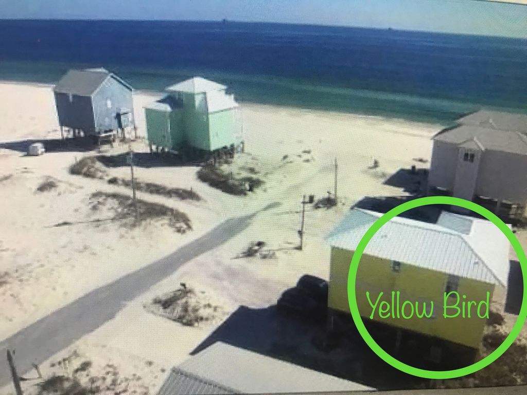 Yellow bird is a wonderful 5 bedroom, 3.5 bath home less than 100 yards from the beach. **There are 2 master bedrooms. The downstairs area is an open concept that includes a family room and kitchen and dining area. Beach view from all angles. Upstairs another small den / tv area also face the water.*One master bedroom with private bath located downstairs*additional master bedroom with bath shared by twin bedroom. * 2 additional queen bedrooms upstairs. ***PLEASE NOTE: There is a full sized sleeper sofa in the upstairs tv areaOutside the large deck faces the gulf. There is an outdoor area with shower located down stairs to wash up when coming in from the beach. There is a gas grill available on the property for cook outs. *****Yellow Bird IS A PET FRIENDLY property. Well behaved dogs will be considered with an ADDITIONAL $200 pet deposit. If no damages {including no extra hair} are incurred during the stay $150 of the deposit will be refunded (after the property is cleaned and inspected). $50 of the pet deposit is non refundable and retained as a pet cleaning fee.