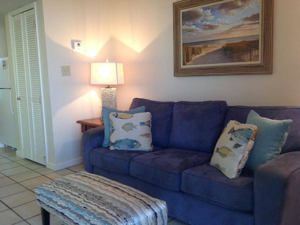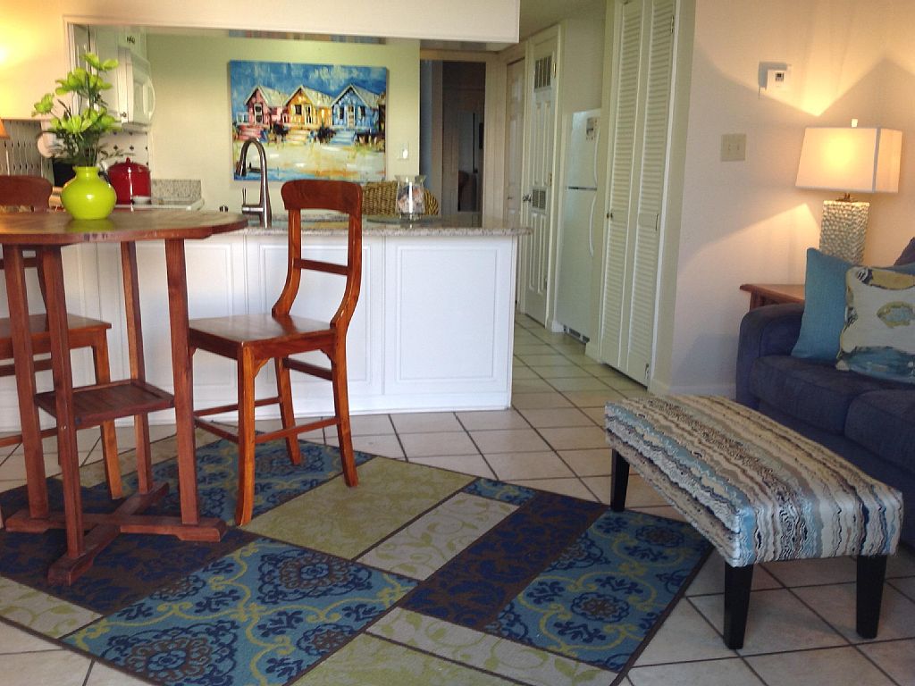 Gulf Shores Surf and Racket Club 301C with fantastic sunrise and sunset views from the 2 balconies in the unit...The unit has a lovely bedroom with a queen bed..gorgeous bedding..flat screen TV......private sunrise balcony ...the room is private and closes off from the rest of the condo. The remodeled well equipped kitchen has everything you need to prepare a great meal of your choice...The counter tops are finished in granite with white cabinetry...There is bar for casual meals as well as a dining table...The living room has a flat screen TV as well as a beautiful couch that converts into a super comfy queen sleeper bed...The balcony off of the den area looks over our gorgeous tropical pool area...as well as a offers a drop dead due west Gulf Shores sunset over our pier and the Little Lagoon....Located 3.3 miles west of hwy 59 at The Hangout in Gulf Shores...3 night minimum stay year round. Parking pass purchased by guest at the on-site office: 20.00, limit 2. minimum age to rent is 25 years old. condo is 550 square ft.