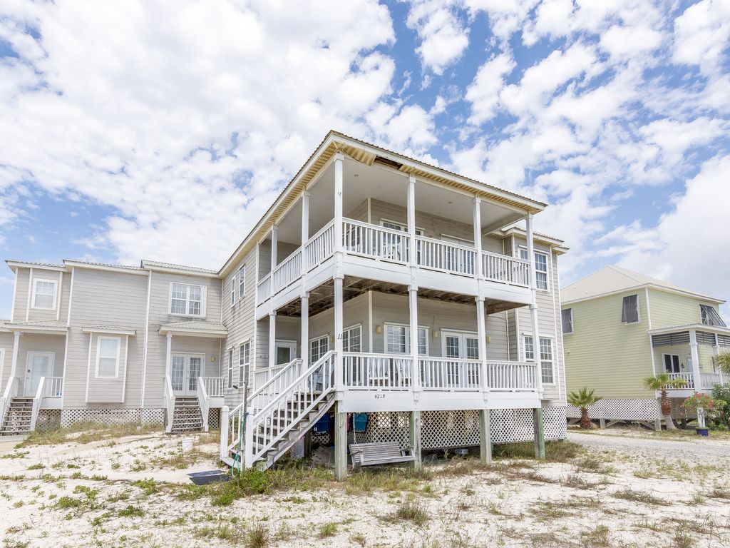 Seahawk North #11 is a great beach house located in Bay to Breakers which offers the beach and the bay for your vacations. My beach house has (4) bedrooms and (3) baths with (2) large wrap-around porches. The kitchen, dining and living area are open to give you a spacious living area. The den/living room has a large flat screen with DVD player. The dining table will accommodate (8) chairs with bar off the kitchen. Downstairs has a (1) bedroom with queen bed and bath. The upstairs has a large master bedroom with private bathroom. The master has access to the large upstairs porch. There is a bedroom with queen bed and another bedroom with bunk bed with double/twin.Beach Tent Rentals on site!