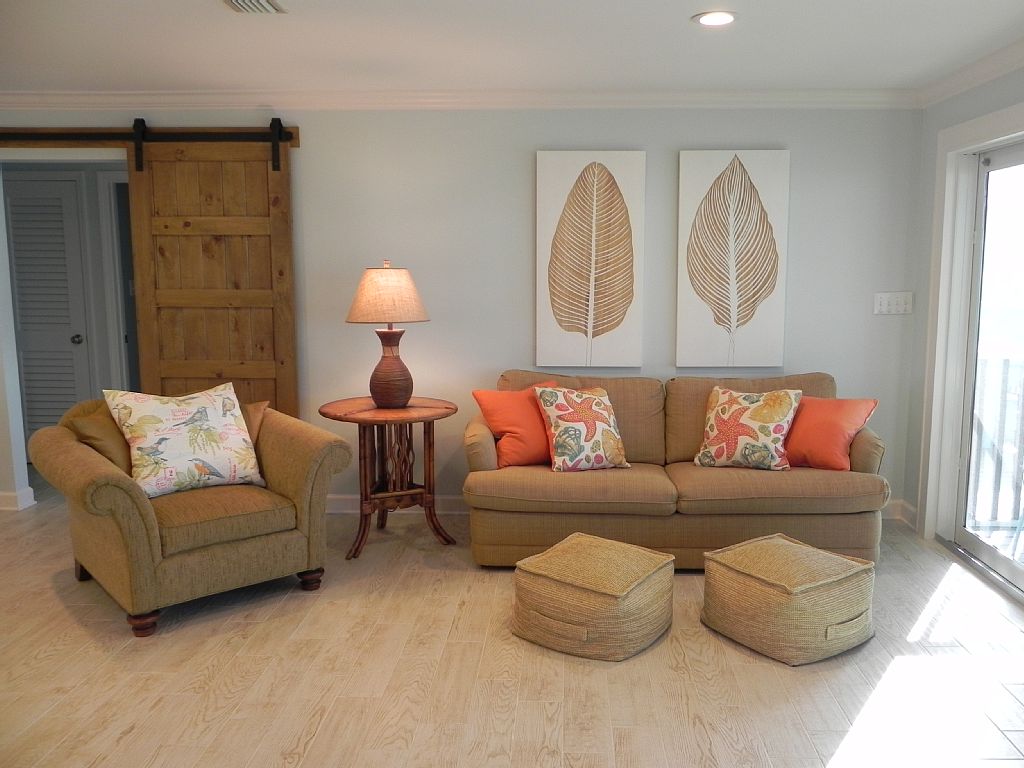 Come enjoy your wonderful stay at this newly, completely renovated ( 2016) beach home. Coral Dunes will welcome you to the beautiful beaches and waters of the Fort Morgan area of Gulf Shores! If you want to escape the crowded beaches, and enjoy a quiet getaway for families, kids, and friends, Coral Dunes is the place to be! Settle in, relax, and unwind in this beautifully decorated house.Coral Dunes is a one level, 4 bedroom , 2 bathroom beach home , that comfortably sleeps 10 guests. It is located in the wonderful quiet subdivision of Surf Side Shores, located off of Ft. Morgan Road ( Highway 180 west ) . The neighborhood is great for bike riding and relaxing walks! Although we are not beach front, we are right across the street! The beaches are very accessible. An easy, short 2 minute walk out the door, across the quiet beach road, and you are on the beautiful white sandy beaches! As you enter Coral Dunes, a large open living area, with open kitchen and dining areas, offers beautiful views of the gulf waters. The entire south wall of the living area consists of large sliding glass doors that completely open the living area up into the screened back porch, allowing you to enjoy the relaxing gulf breeze ! The central living area separates the 2 bedroom wings, offering the perfect set up for 2 families traveling together! Sliding barn doors make it possible to close off the bedroom wings from the living/kitchen area for quiet and privacy. A full queen size sleeper sofa is located in the living area.The east bedroom wing consists of 2 bedrooms and 1 bathroom. The master bedroom has a king size bed, TV , and great view of the gulf . The 2nd bedroom has a queen size bed. The bathroom has a separate beautiful tile shower with a single sink vanity.The west bedroom wing also consists of 2 bedrooms and 1 bathroom. The second master bedroom has a king size bed, TV, also facing the gulf side, with a great view. The additional bedroom has 2 twin beds with a TV for kids to play their video games on ! The bathroom has a bathtub/shower and a double sink vanity. A pack n play crib is also available for little travelers!The screened porch off of the living area offers a great place to take in the beautiful views, have your morning cup of coffee, or just curl up with your favorite book! There are 2 sunning decks located off of the screened porch with plenty of deck chairs for relaxing and sunning, and a large picnic table for dining outside ! Another large deck and BBQ grilling area, and porch swing, is located under the house, offering lots of covered shady areas to relax or play ! The kitchen is fully equipped with all the necessary items needed for preparing your delicious meals. Laundry facilities are also available. All bed linens and bath towels are provided for our guests. Coral Dunes is available for Saturday to Saturday weekly rental during the summer peak season. 2 and 3 night rentals are available during the off peak seasons. No student groups are accepted, and renters must be 25 years old or older to rent the property. An adult, also 25 years old, or older, must be present during the rental period. Make your plans now to stay at this amazing beach house! The beautiful gulf waters and sandy white beaches are calling! We would love to have you as our guests at Coral Dunes!Check out our other property located in the same neighborhood! Top O' the Dunes - property # 632666 - sleeps 14 , and has its own private pool ! More details