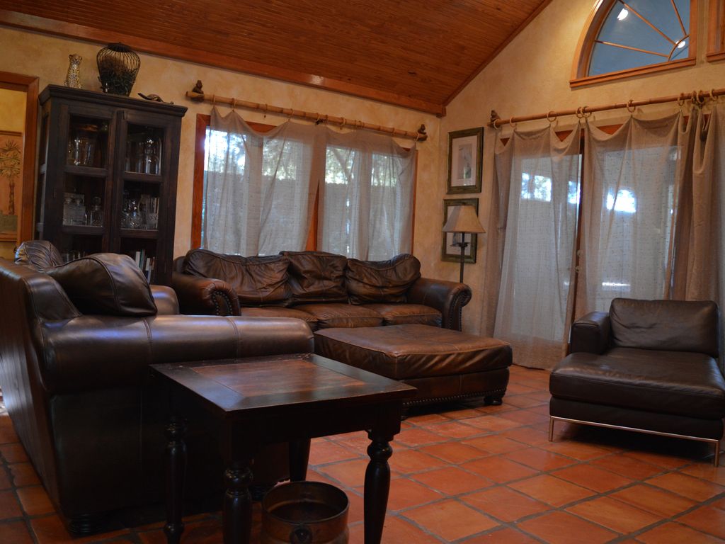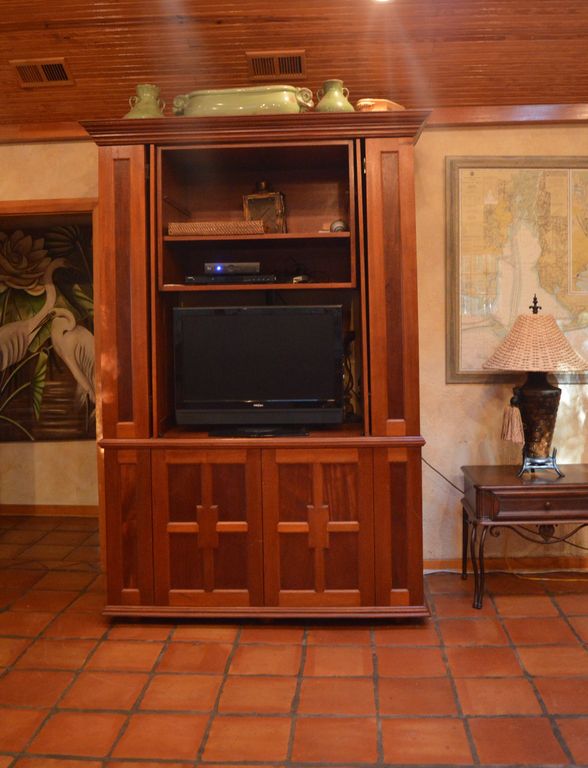 **CALENDAR IS NOT UP TO DATE, PLEASE CONTACT US FOR AVAILABILITY**Fort Morgan/Gulf Shores, ALCOMPLETELY PRIVATE two acre Fort Morgan, AL estate on one of the most beautiful waterfront lots you'll experience on the Alabama Gulf Coast, including 200 year old oak trees covered in Spanish moss, your own private swimming pool, hot tub, open pier and screened in room over the water for watching the sunsets over the bay at Fort Morgan and our colony of pelicans who roost all day on nearby posts.The warmth of this 3500 square foot Mediterranean style property is achieved with the use of Spanish tile, Douglas fir custom cabinets and trim, soaring bead board ceilings, sky lights, nine sets of wood and glass french doors, plastered faux finished walls, and Italian kitchen (complete with granite, custom tile and copper sink) and high end designer furnishings and antiques. All of this on ONE level. NO STAIRS TO CLIMB! A real rarity in the Fort Morgan, Gulf Shores area. And easy access to the beautiful grounds because of the large number of French doors through out the house. The master bedroom features floor to ceiling custom built bookshelves loaded with great books to enjoy, premium king bed, TV, DVD, and VCR and six floor to ceiling windows to enjoy the INCREDIBLE view. Master bath features a huge garden tub and Italian Garden wall mural. There are three other indoor bedrooms and one carriage house complete with two queen beds, air conditioner, TV, VCR, and satellite. There are 2 bathrooms within the house and one additional 'rustic' bathroom located in separate building just off the courtyard making it convenient to the main house and carriage house. Hot Tub is available during Winter and Spring, Will Be Closed for Summer Season.Enjoy the Fort Morgan sunsets from the 600 sq ft screened-in-porch which sits directly over the water- complete w living area, dining area, and bar. There's also a pier for swimming, fishing, crabbing and just sittin'!The coastal grounds are beautifully landscaped with a lush lawn and tropical plants. Additional 600 sq. ft. cottage on this Fort Morgan, AL property can also be rented for additional $800 or less per week. It sleeps 4 and boast queen bedroom, separate living area w/sofa sleeper, full kitchen, and bathroom w/shower. We call it 'Kay's Cottage'This was the builder and designers primary home - and now, it's your opportunity to enjoy a million plus Fort Morgan estate for one perfect week! SORRY BUT WE DO NOT ALLOW WEDDINGS, RECEPTIONS, LARGE FAMILY REUNIONS OR ANY TYPE OF GATHERING THAT INCLUDES MORE THAN THE MAXIMUM AMOUNT OF PEOPLE ALLOWED TO SLEEP ON THE PROPERTY.Prices do not include taxes and all other applicable fees. Keywords: Gulf Shores, Alabama, Waterfront House, Private Swimming Pool, Hot tub, located along the Fort Morgan, Peninsula. Home Sleeps up to 17 with additional Cottage rental. More details
