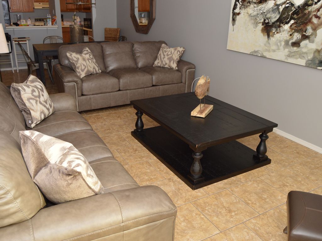 You have found the perfect place to stay! New 46' LCD TV in DenThis condo is located in Sea Oats Complex, one of Gulf Shores Vacationer's favorite places. Get away from the crowded beaches with our deeded beach access and over seven acres on little lagoon, everyone will be happy. Fishing piers, two gazebos and 50 boat slips with private boat launch and two large pools. The condo is beautifully decorated and there is plenty of room with 2 bedrooms and 2 full bathrooms, large kitchen and dining. A new 46' LCD TV in the den, fresh paint and new tile throughout. I promise it will exceed your expectations, and you will still have money left to enjoy your vacation!!