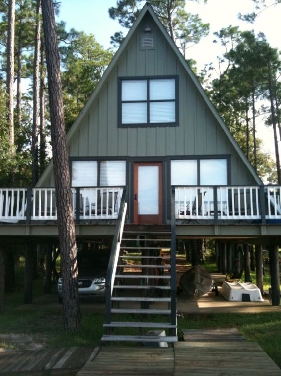 Come enjoy the fabulous sunsets and relaxing atmosphere in this spacious a-frame on the bay! The house is just minutes from the great shopping and dining of the city of Fairhope, but just off the beaten path enough to feel private and secluded! Located on the eastern shore of Mobile bay, the house faces almost due south, meaning refreshing breezes in the summer, but protection from the wind in the winter, making the outdoor weather fabulous year-round!This house would be perfect for two vacationing families. The downstairs bedrooms both have King sized beds, while the bunks upstairs will sleep lots of kids!The sandy beach is perfect for small kids. A snowbird couple would also love this house, as the upstairs need not even be used! The view from the kitchen as you cook is just breathtaking.There is a public boat ramp just one mile away, so bring your boat for skiing, tubing and fishing on the bay, or for a beautiful ride up the nearby magnolia river to swim in the cold spring waters. Don't forget to pack your appetite for seafood. When baited, the three crab traps provided catch as many as a dozen crabs a day!Keywords: bay house, snowbird, water, pier, Fairhope, Point clear, Grand Hotel More details