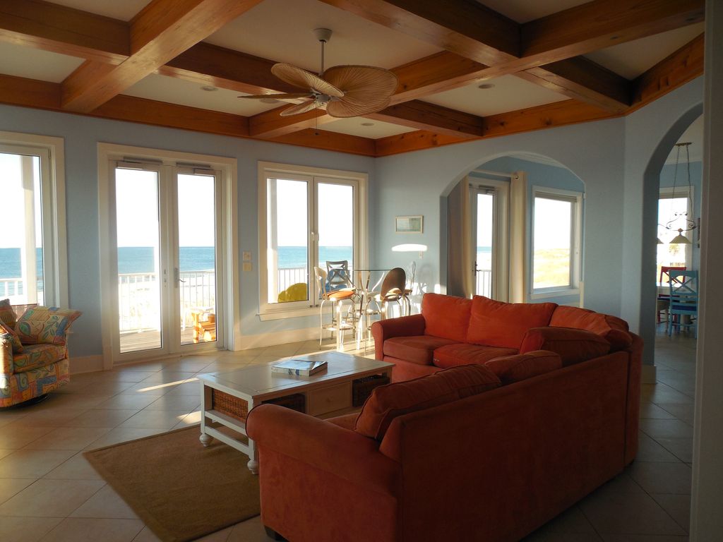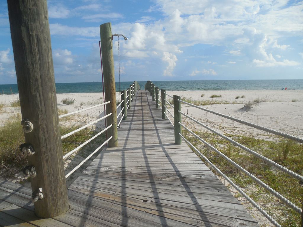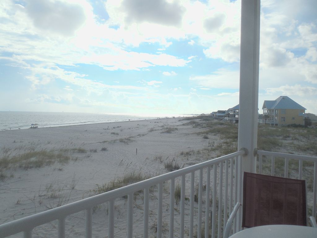 The name says it all!!! Come watch the sun sink in the gulf and relax with this beautiful 6 bedroom 5 full baths and 2 half baths two story home that is located directly on the Gulf of Mexico with a boardwalk to your private beach. This home sleeps 18 and is the perfect family get away to make sure family stays together. The home boast an open floor plan allowing for a perfect view of the gulf from almost anywhere in the home. The two master bedrooms and baths have their own private decks only accessible through the bedroom. Two other bedrooms have private baths and Gulf views. The two larger decks off the living areas allow for dolphin watching or just enjoying the Gulf breezes. The home is elevated which provides covered parking with a swing, grill, storage for beach items and a 1/2 bath conveniently located on the beach level. The interior has tiled and wood floors through out as well as granite counter tops in the kitchen and baths. 8 flat screen TV's are scattered though out the house with all your favorite cable channels. Let the kids hang out upstairs playing games or watching TV in their living area while the adults enjoy the downstairs living area and wet bar. The home is equipped with a washer and dyer, 2 ice makers, 3 refrigerators, high end kitchen appliances including single cup and carafe coffee makers, coffee grinder, blender, WIFI and a sound system that services the outside as well as the inside. You are also just 15-20 minutes to Outlet Stores, restaurants or the night life of Gulf Shores and Orange Beach. Want to bring your own boat? No problem...there are several public launch areas just down the street from Million Dollar View that provide access to the bay or the gulf. Golfer? Kiva Dunes is just around the corner providing some of the best golf on the gulf. This home has it all... including our 'pet' Blue Heron Rufus who loves to be fed bait from the local stores... Come see for yourself! Visit us on Facebook at Million $ View Gulf Shores Looking for something a little smaller... check out our other property Bama Sunshine. VRBO# 929305 More details
