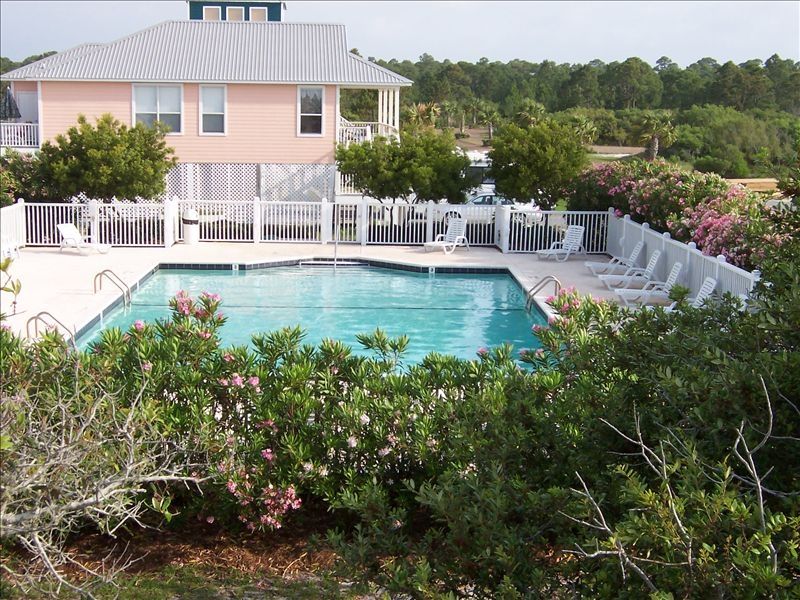 'Morgans Escape' is a comfortable beach house located 200 yards from the beautiful private beach of Morgantown. You can sit on the swing or an adirondack chair on the front porch (38 feet long) and listen to the ocean waves while enjoying fantastic Gulf views - or watch the children swim in the pool located right next to the house - or ride your bicycle along Fort Morgan Road, play tennis or just walk along the beach and collect shells. You can do as much or as little as you want in Fort Morgan. Fort Morgan is a 20 mile peninsula bordered to the north by Mobile Bay and to the South by the Gulf of Mexico and Bon Secour National Wildlife Refuge. There are several world class golf courses located within a few miles of the house (Kiva, Peninsula and Plantation). The NEW Gulf Shores Marina & Tacky Jacks restaurant are just down the road where you can launch your boat or book a fishing charter. You can also take a ferry to Dauphin Island for a day trip (visit the estuarium or just ride bikes). Other area activities include shopping at Tanger Outlet Mall, visiting the waterpark in Gulf Shores, going on a Dolphin cruise, or playing miniature golf. There are many excellent restaurants in the Fort Morgan/Gulf Shores area and a wide selection of Arts & Antiques stores in the city of Fairhope - about 45 minutes away. 'Morgans Escape' has a large kitchen and living area with plenty of room for the family to visit and have fun. Two bedrooms open to a back deck with ocean views. There is a large dining table and a card table for games. There is a swing, picnic table and hammock under the carport. Dogs and children are welcome. These are pictures I've taken over the years.Keywords: Beach House Rental in Morgantown located at Ft. Morgan, 2 pools, Tennis courts, short walk to beach, pool next to house More details