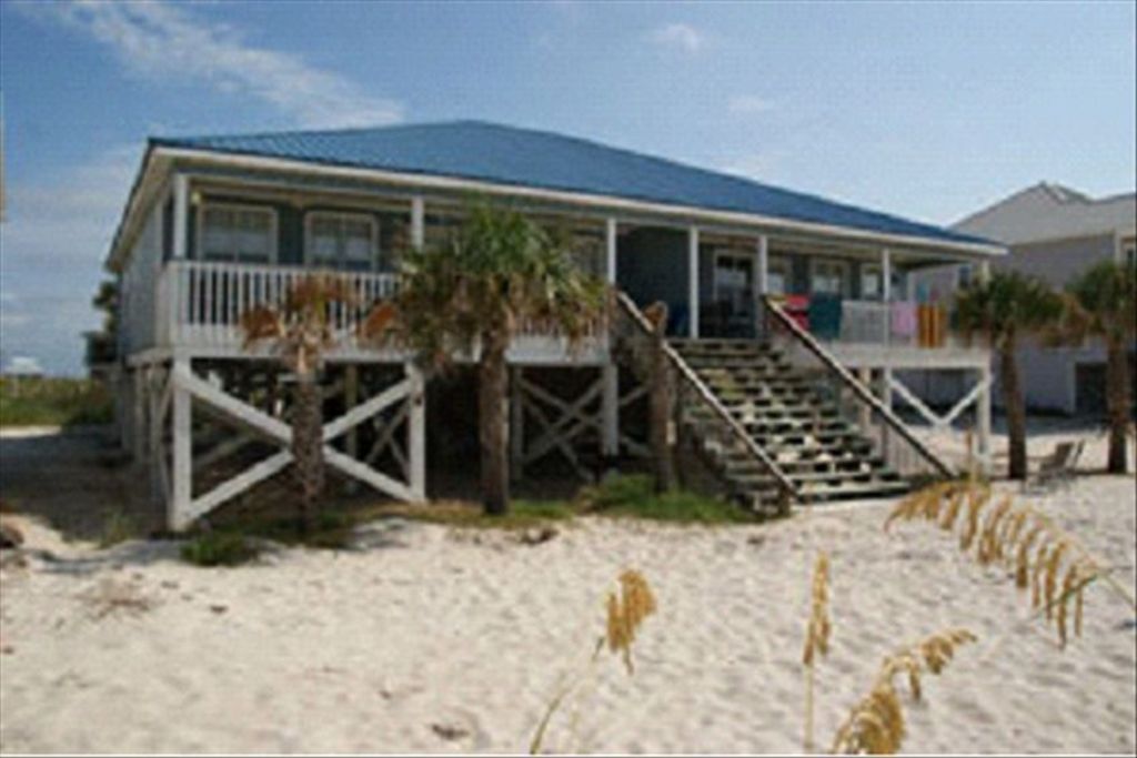 Recently renovated beachfront home offers luxury at competitive prices. Italian tile floors, granite counter tops, stainless steel appliances, leather furniture, and very nice surroundings ensure a secluded beachfront experience. Wifi recently installed! Sleeps 12 comfortably in one king size bed, one queen and 4 bunk beds, with two fold out leather sofas in the family room. Enjoy the beautiful sandy beaches and see the dolphins while relaxing in a rocking chair in the covered back patio. Family friendly, clean, and very unique as it is surrounded by palm trees and other vegetation. Large screen television with DVD, VCR and stereo system. Guests frequently rent both sides of the Duplex (Dolphin West and Sea Turtle East) if they wish to have more bedrooms, yet have two separate living areas (one side for Grandparents, and the other side for young children, etc.) - total capacity on both sides is 24, with six bedrooms and 4 bathrooms. Renting both sides at once is frequently more economical than renting a comparable 6 bedroom home (with only one living area) in Fort Morgan. We primarily deal with repeat visitors, which is the best testimonial of all. We are confident that once you visit our home, we will be seeing you again and again . . .Prices below do not reflect 11% Sales Taxes or $165 Cleaning FeeKeywords: Duplex More details