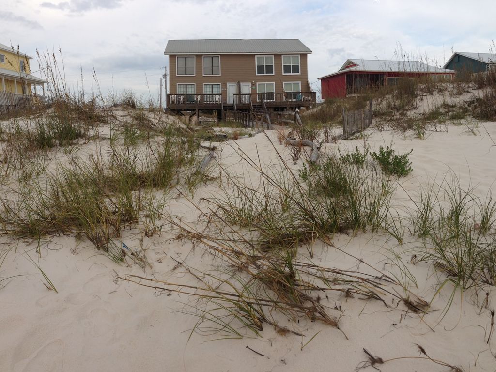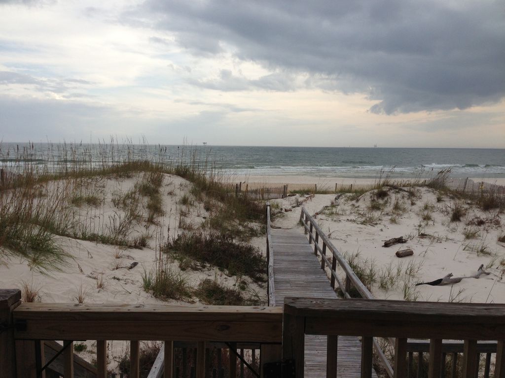 This spacious and private duplex (two levels, approx. 2,500 sq. ft.) is located on one of the best beaches in Alabama. There are no high rise condominiums for your neighbors and the convenient proximity to Fort Morgan, Fort Morgan Marina and Ferry have made our family beach house, Sandhaven, a wonderful vacation spot!DOWNSTAIRS: Large, tiled sun room with round game table and four chairs, comfortable reading area, wicker sofa with queen size sleeper and surround views south, east and west of the ocean. Fully equipped kitchen and dining area with granite counter tops, stove, built-in microwave, dishwasher, refrigerator, separate and additional ice maker (a must and plus for large groups) cookware, etc., including large shrimp pots. Dining room table accommodates eight with additional seating at breakfast bar. The open living room/great room has a cozy sectional sofa, recliners, love seat and wicker chair with ottoman, satellite TV, Wi-Fi, DVD and VCR. Everyone loves this room. Downstairs master bedroom has a queen size bed with all amenities; adjoining bathroom with tub/shower, built-in vanity closets and tiled floors.upstairs: Three more comfortable bedrooms, two with queen size beds, one with twin beds and stylish furnishings. The upstairs master gulf front is large with panoramic views of the gulf east to west. In addition to the twin beds, this room has a daybed with trundle, armoire, TV & DVD.Large upstairs bathroom has a tiled floor, built-in vanity, closet, shower and tub. The adjacent laundry room has washer and dryer and storage area.Upstairs hallway connects all bedrooms to bath and laundry rooms.Sandhaven has two outside decks with deck furniture. There is a private entrance and convenient personal board walk to the beach. The lower, shaded deck has a BBQ grill, oak swing, table, chairs and teak recliners. The enclosed hot and cold outdoor shower is a favorite with our guests. BR B Amenities: /B BR Central Heat and air, ceiling fans in every room. Washer/Dryer, dishwasher, ice machine, microwave, 3 color TVs w/ cable, VCR, C.D. & cassette player. Sheets, towels (except beach towels)Telephone (334) 540-7735Hot and cold outdoor shower, grill, swingClean-up service when you leave. More details